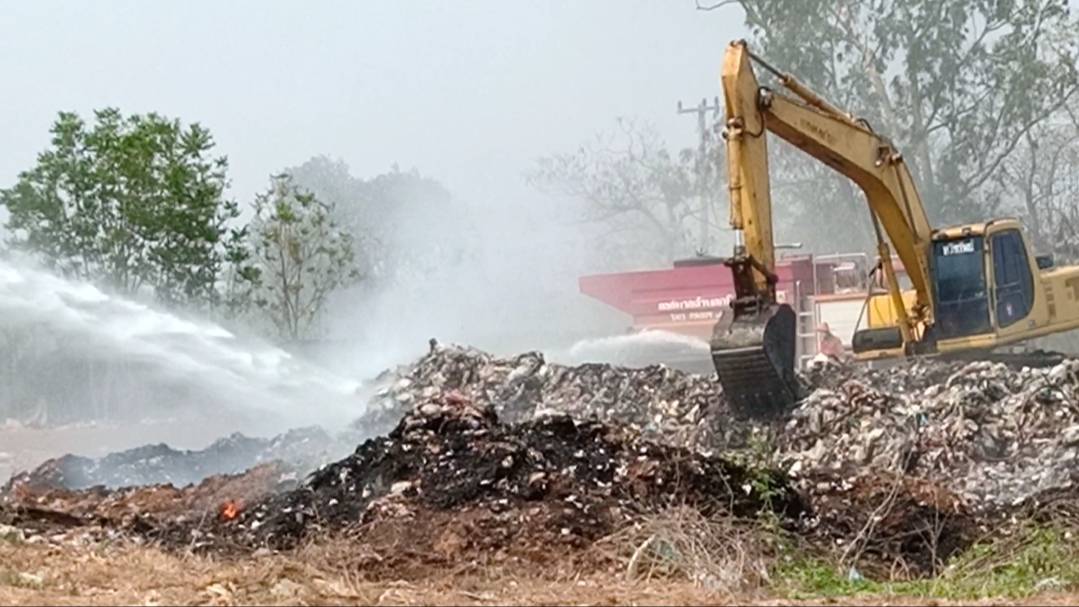 13.30 น.เพลิงจึงสงบลง ในการดับไฟบ่อขยะ